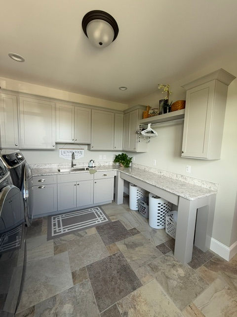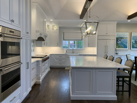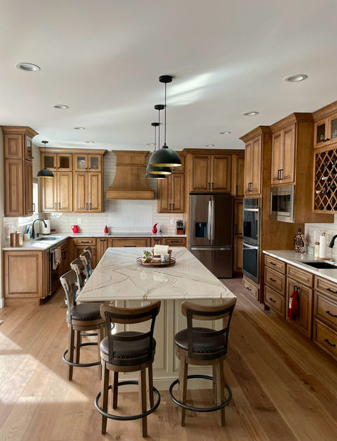 This features our Shiloh line with Almond stain on the perimeter and Artic paint on the island.